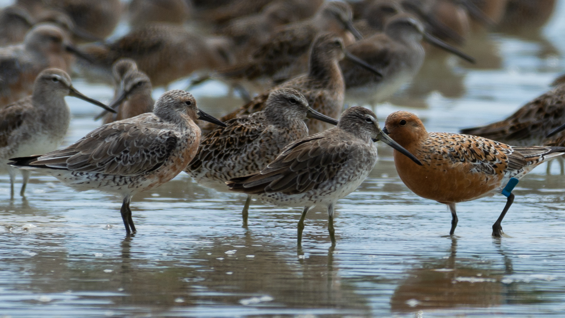 É o caso do Maçarico-de-papo-vermelho, espécie ameaçada de extinção e que está no centro das ações do projeto Flyways Brasil. Sua população em declínio ressalta a importância contínua dessa iniciativa, não apenas para a preservação de seus habitats, mas também como parte fundamental do enfrentamento às mudanças climáticas.